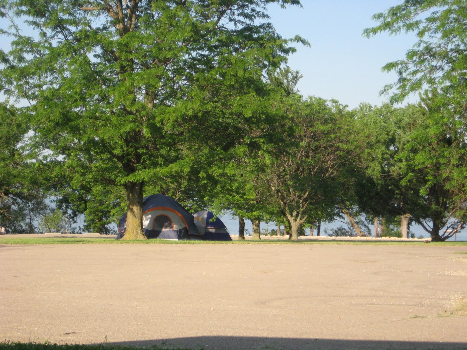 Our tent which was hidden under a tree and in view of the water.